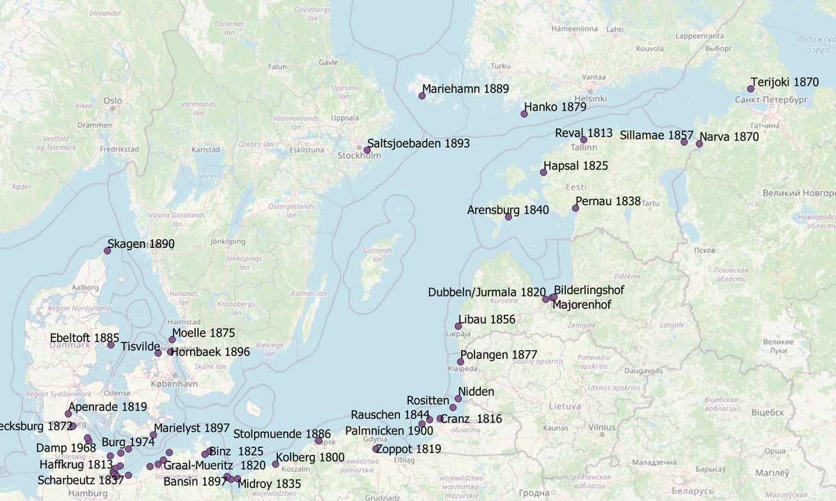 In order to reveal specific features, discontinuities and continuities, a longue durée perspective and a broad geographical scope have been chosen: From the emergence of the first Baltic Sea resort, Heiligendamm, in 1794, to the end of systemic rivalry in Europe in the early 1990s; from Sopot and Travemünde in the south to Terijoki (Zelenogorsk) near St. Petersburg in the east, Mariehamn on the Åland Islands in the north and Skagen in the west.